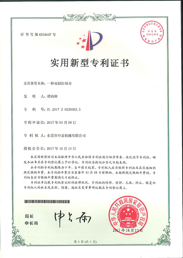 一種雙射缸組合專利證書(shū)